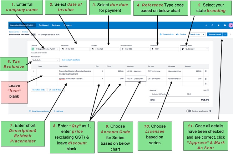 Note: In every invoice issued, it is important that you include your state reference in the “reference” field (eg. NSW) as this will allow you to easily search the system for invoices you have issued.